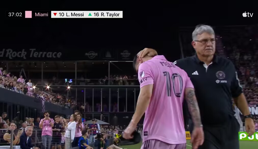 直播吧9月21日讯 美职联迈阿密国际对阵多伦多FC,第36分钟梅西被泰勒换下,疑似出现受伤状况。