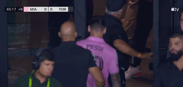 上半场还未结束,梅西在替补席待了一会,随后离场直接返回更衣室。