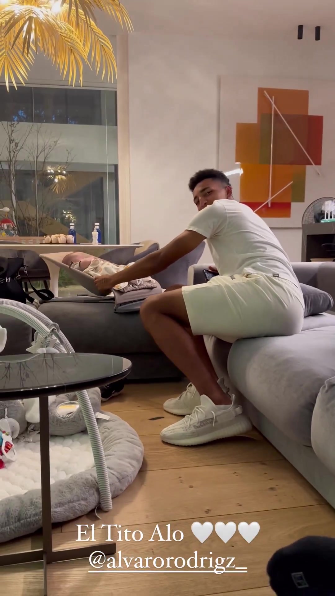 巴尔韦德妻子米娜更新社交媒体,19岁小将阿尔瓦罗-罗德里格斯帮助同为乌拉圭人的老大哥巴尔韦德带娃。