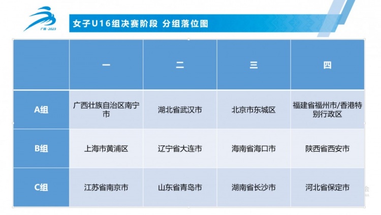 第一届学青会(公开组)女子U16组决赛阶段抽签结果出炉