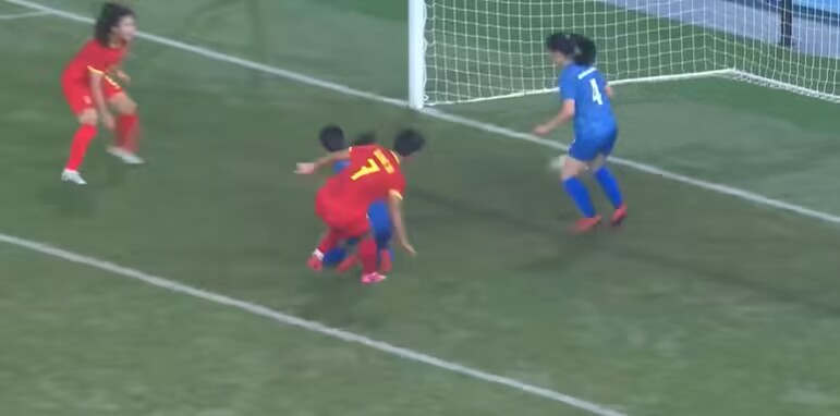 直播吧9月22日讯 亚运女足小组赛,中国vs蒙古比赛第18分钟,王霜中路带球突进,把对面门将+后卫全部过完后破门,中国3-0蒙古。