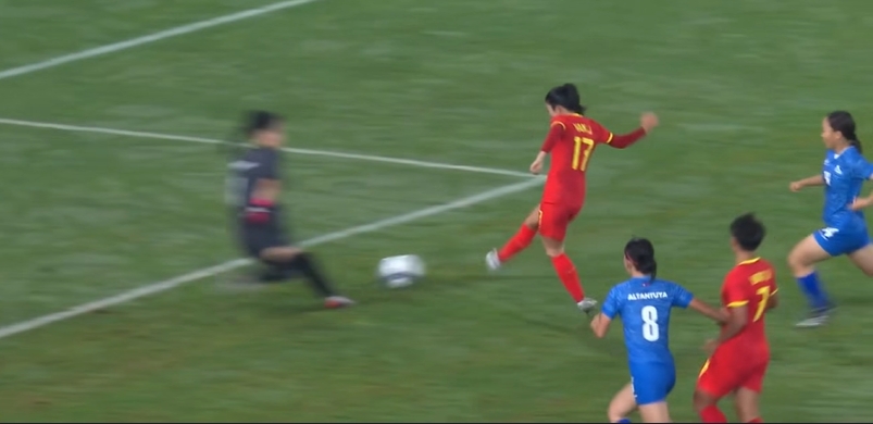下半场继续进!闫锦锦单刀破门,中国女足9-0蒙古