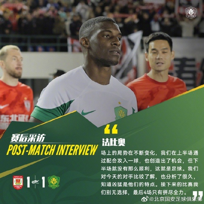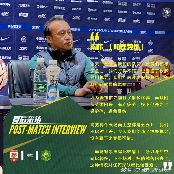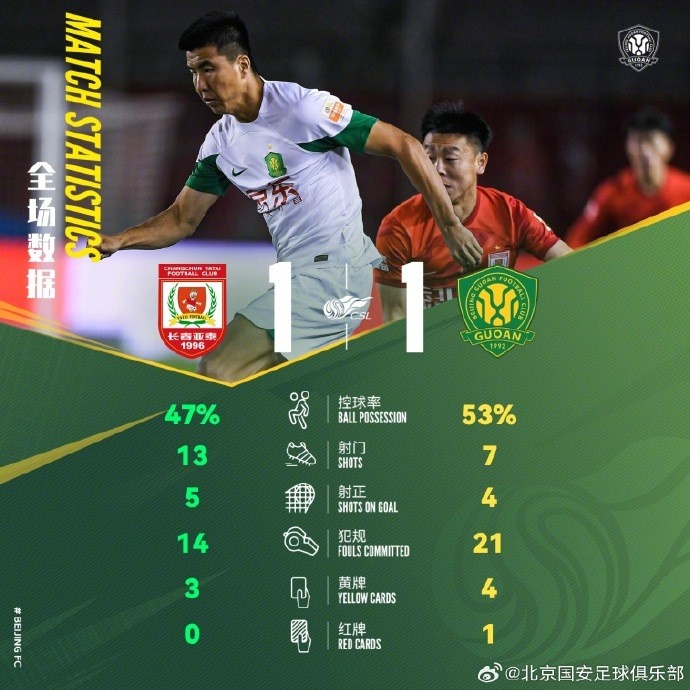 >长春亚泰1-1北京国安本场比赛赛后采访和技术统计