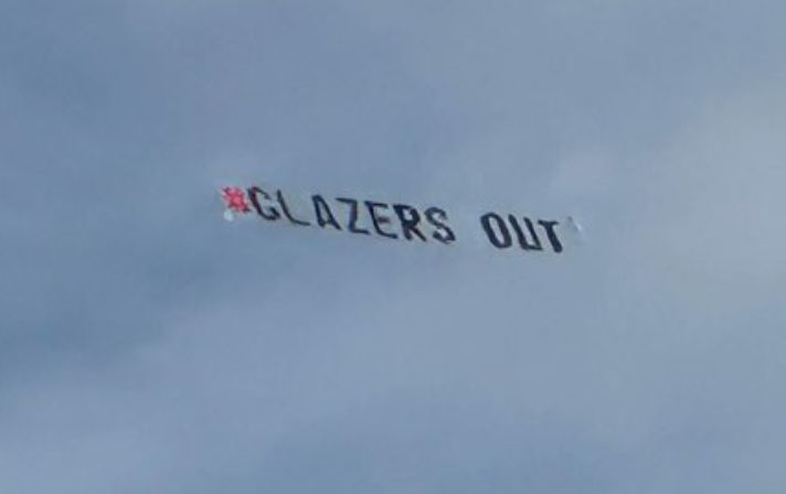 NFL坦帕湾海盗队的比赛中,曼联球迷组织租飞机拉着“Glazers Out”的横幅从球场上空飞过。