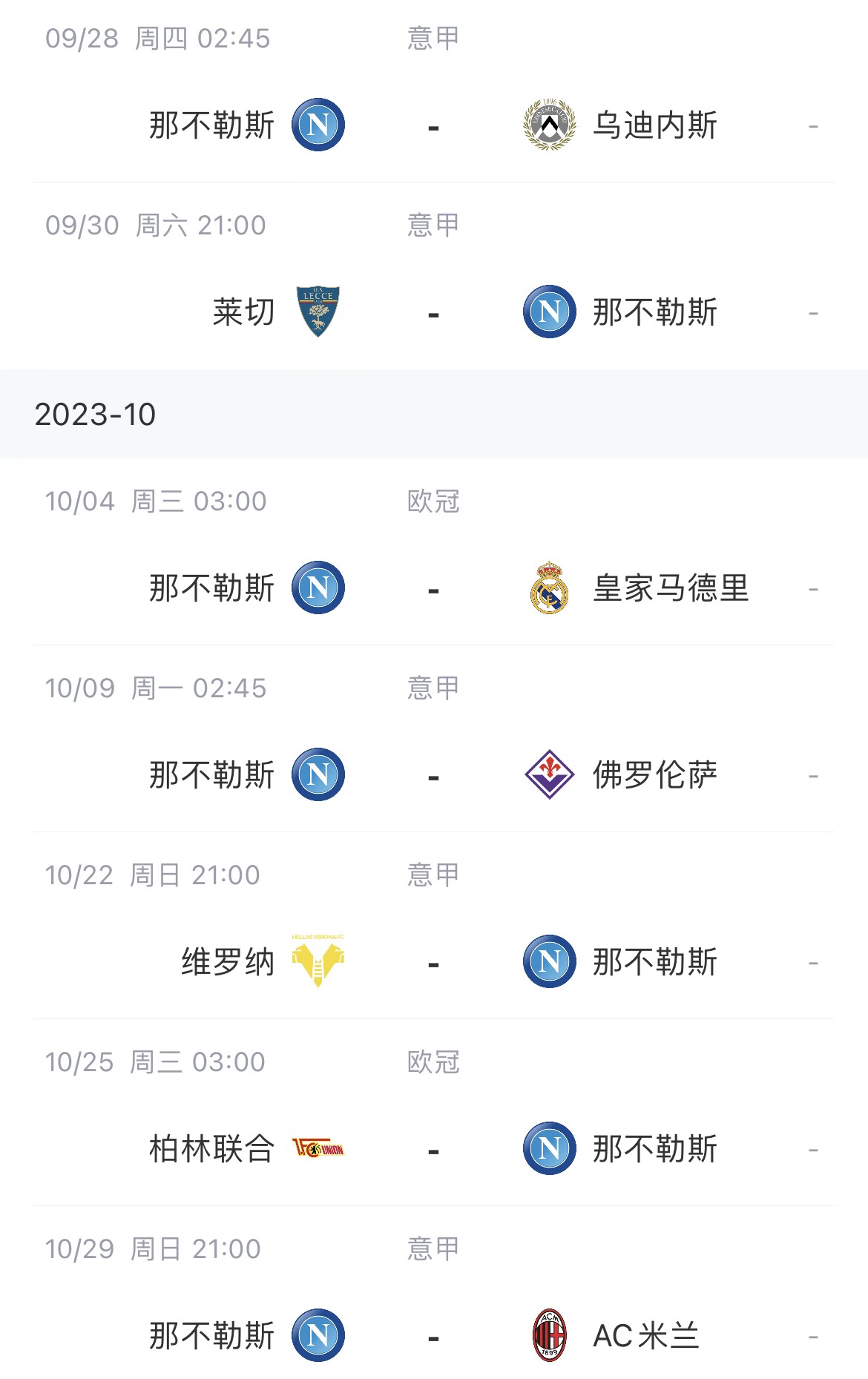那不勒斯目前联赛2胜2平1负,暂排第七。本周他们意甲一周双赛,下周中就将迎来与皇马的欧冠小组赛。