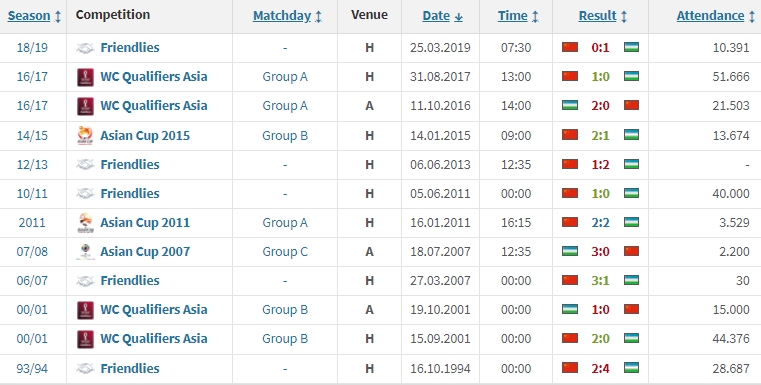 至于国足下个月的另一个对手乌兹别克斯坦,两队历史上共12次交手,国足取得5胜1平6负的战绩,最近一次交手是在2019年3月,当时国足友谊赛上0-1不敌乌兹别克。