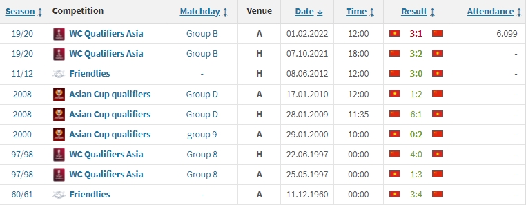 回顾国足与这两个对手的交战历史,国足对阵越南历史交锋9次,取得8胜1负的战绩,上届世预赛,国足在12强赛两回合3-2、1-3越南,次回合是历史首次负于越南。