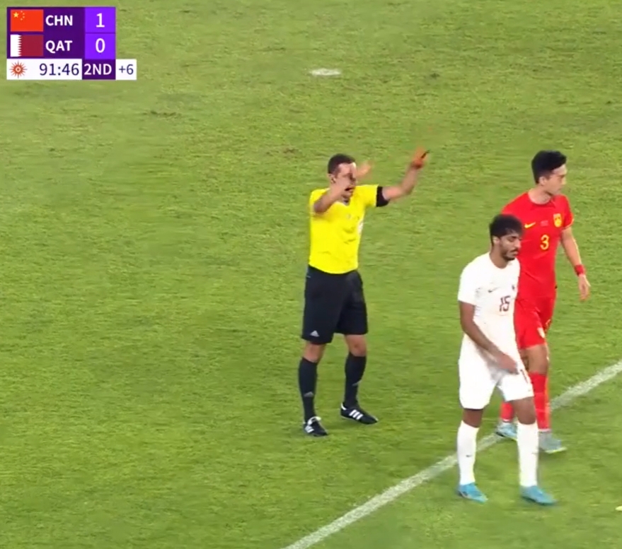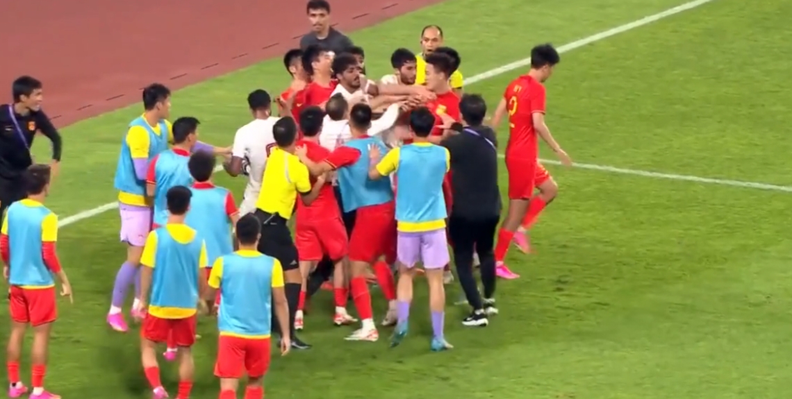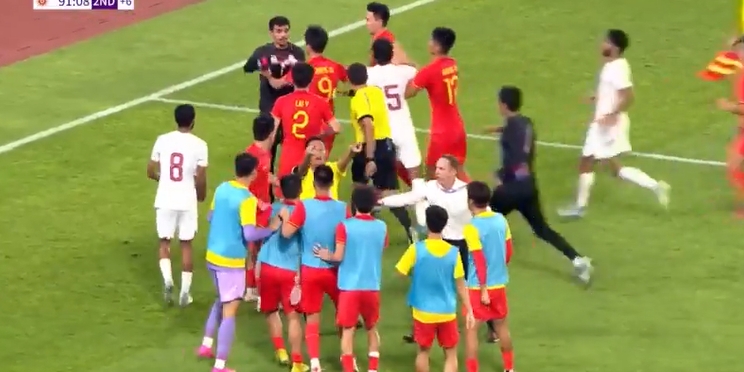 直播吧09月27日讯 亚运会1/8决赛国足亚运队vs卡塔尔U23,亚运男足1-0战胜对手,进入1/4决赛。伤停补时阶段两队爆发激烈冲突,蒋圣龙和卡塔尔球员贾西姆-阿卜杜勒萨拉双双被罚下!