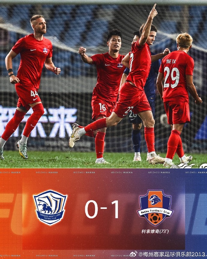 北京时间9月29日19:35,2023中国平安中国足球协会超级联赛第27轮比赛,梅州客家做客沧州体育场对阵沧州雄狮。凭借科索维奇下半场远射破门,梅州客家1-0客胜沧州雄狮。