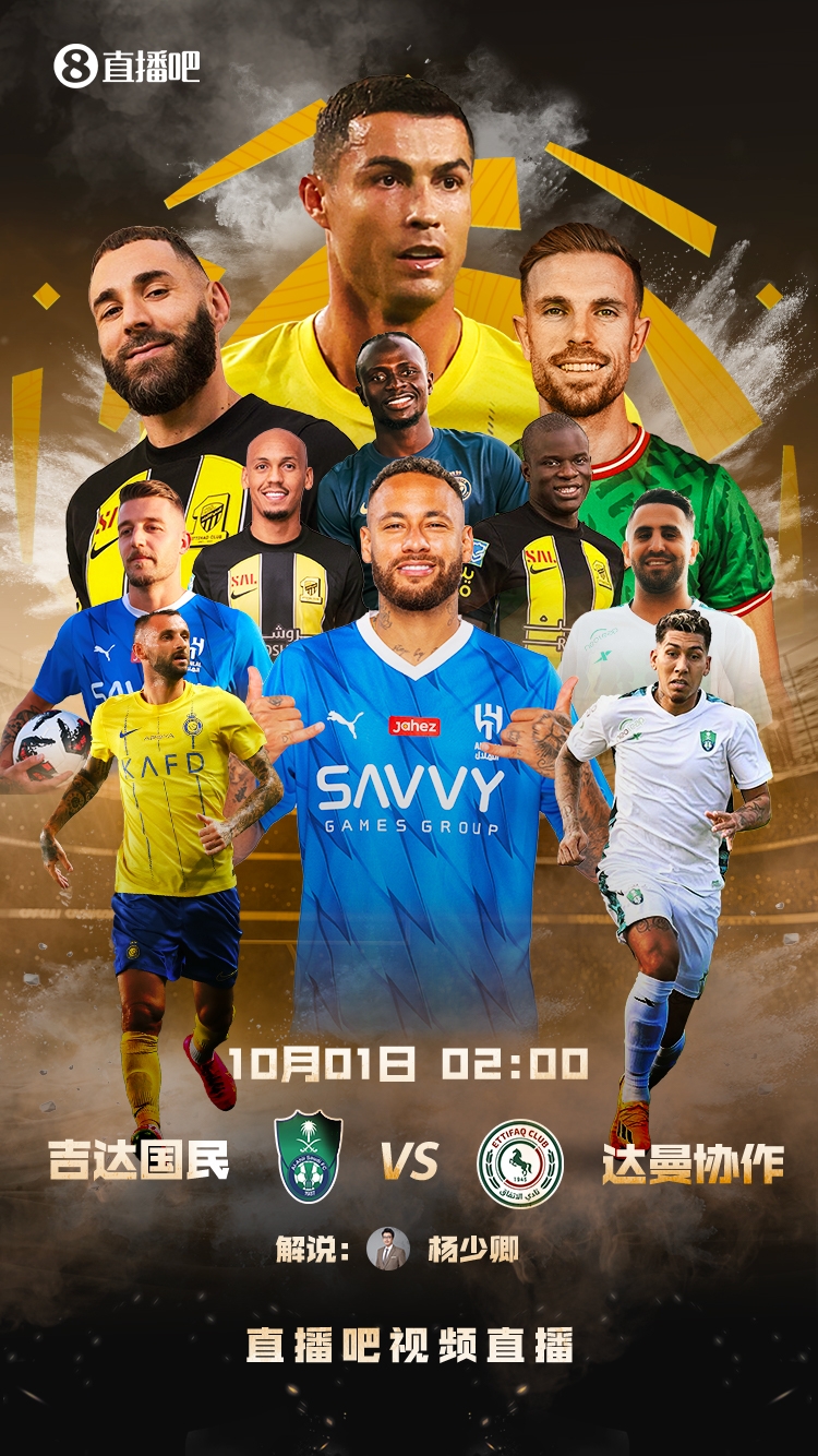 北京时间10月1日凌晨2点,吉达国民主场迎战达曼协作,杨少卿将带来本场比赛的解说。