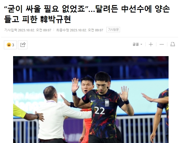 赛后朴规现讲道:“这是心理战,没必要发生冲突,我马上走开避免这种情况,也没有和对方球员进行单独交谈。”