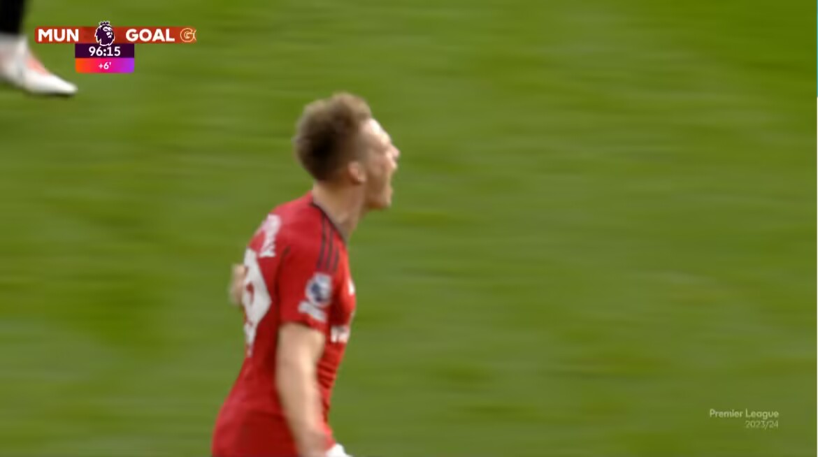 第93分钟,加纳乔下底倒三角,曼联连续射门,麦克托米奈劲射破门!曼联1-1扳平!↓