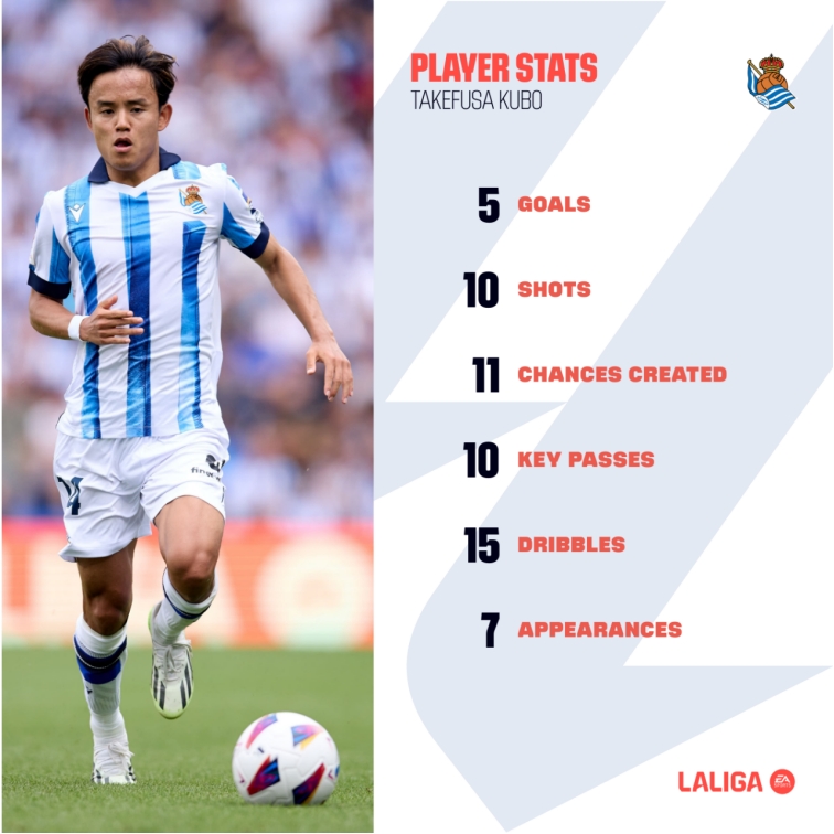 上个赛季,他已经成为西甲历史上单赛季进球最多的日本球员,而在本赛季初,他成为了西甲历史上进球最多的日本球员。上赛季,他打进了九个进球并助攻七次,创下了高标准,但在本赛季,他迈出了展示自己实力的又一步,取得了良好的开局。