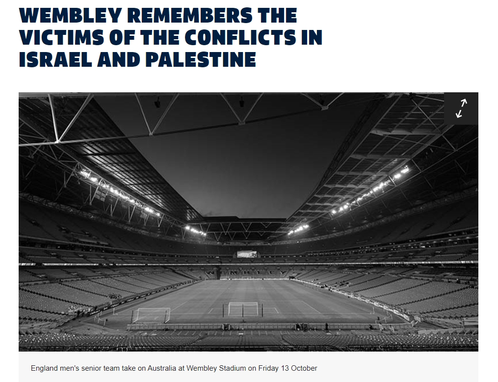 直播吧10月12日讯 英足总官方就巴以冲突发表声明,悼念无辜受害者,将佩戴黑色臂章并默哀,但不允许球场内悬挂除参赛队之外的旗帜等物品。