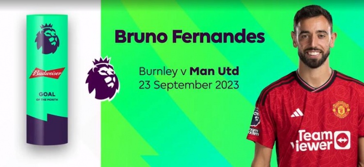 直播吧10月13日讯 官方消息,曼联中场B费对阵伯恩利的凌空抽射破门当选英超9月最佳进球。
