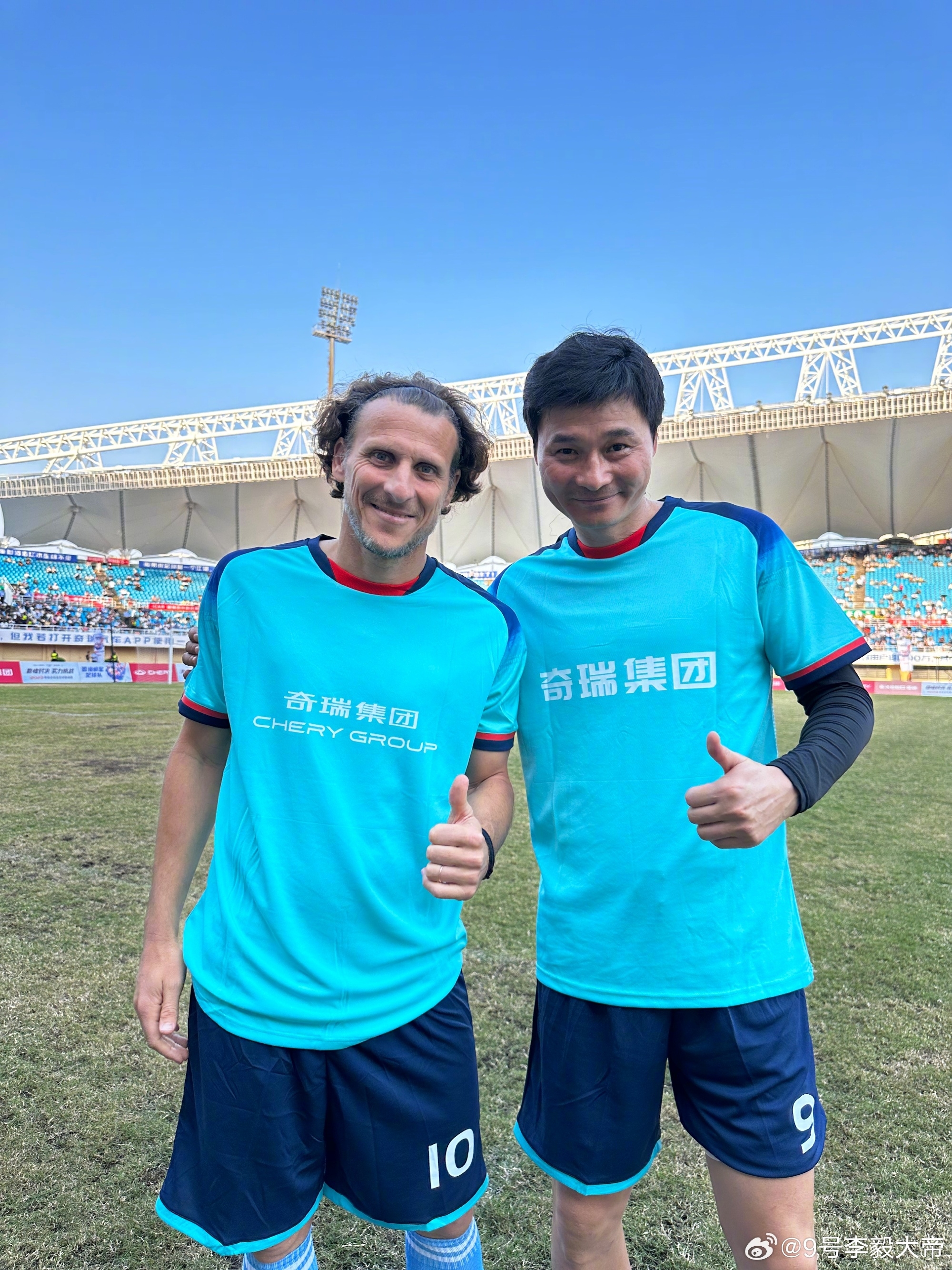 赛后李毅在社媒晒出与迭戈-弗兰的合影,并配文:只有退役了以后才能搭档一下,10年世界杯的最佳射手也老了