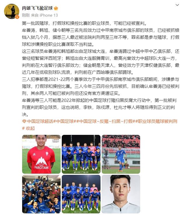 今日媒体人冉雄飞在社媒爆料,第一批赌球,打假球和操控比赛的职业球员,可能已经被宣判。
