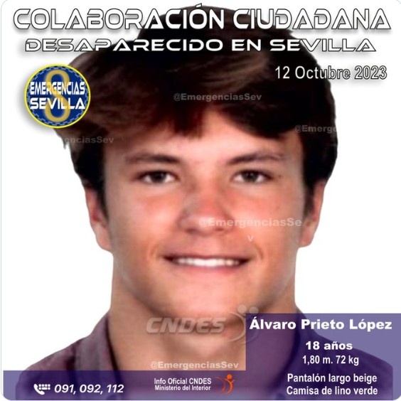 10月12日,洛佩斯在车站失踪,目前警察仍在继续搜寻,安达卢西亚紧急救援组织正在传播关于该年轻人的图像和相关数据。
