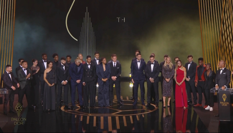 >金球奖颁奖典礼现场大合影,获奖大热梅西站在最边上🤣
