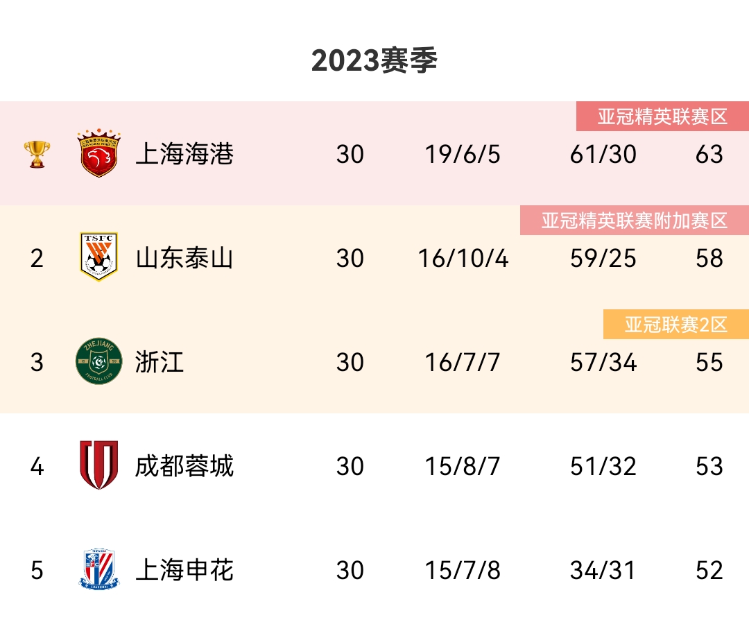 海港确定获下赛季亚冠精英赛资格,其他席位须待足协杯结果决出。