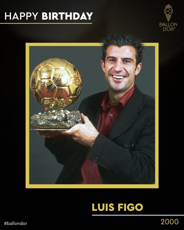直播吧11月4日讯 今天是葡萄牙传奇球星菲戈的51岁生日,金球奖官方为他送上祝福。