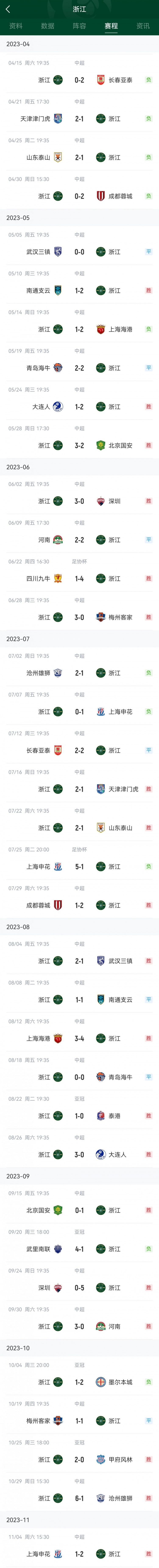 浙江队赛季进程↓