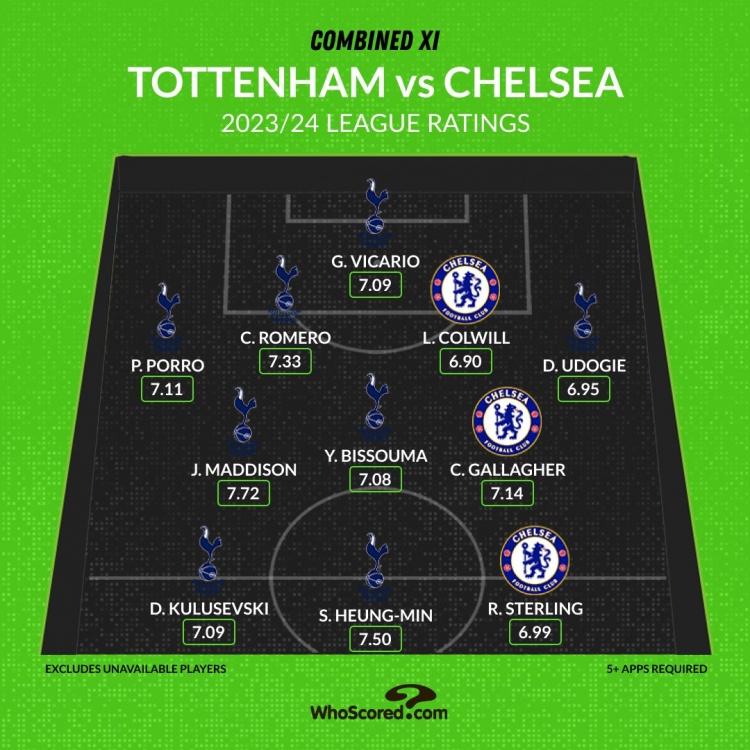 直播吧11月6日讯 北京时间明天凌晨,热刺将在英超第11轮比赛中主场对阵切尔西,WhoScored根据球员本赛季的评分列出了两队合体最佳阵容,切尔西仅3名球员入选。