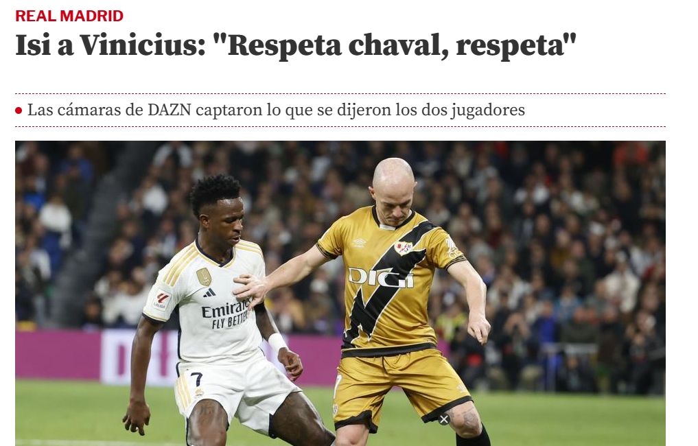 维尼修斯在比赛中多次和帕拉松缠斗在一起,帕拉松最后对维尼修斯说道:尊重,孩子,请尊重点(Respeta, chaval. Respeta)