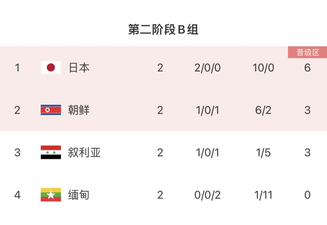 B组首轮,日本5-0横扫缅甸。日本在两场比赛丢0球,轰入10球。