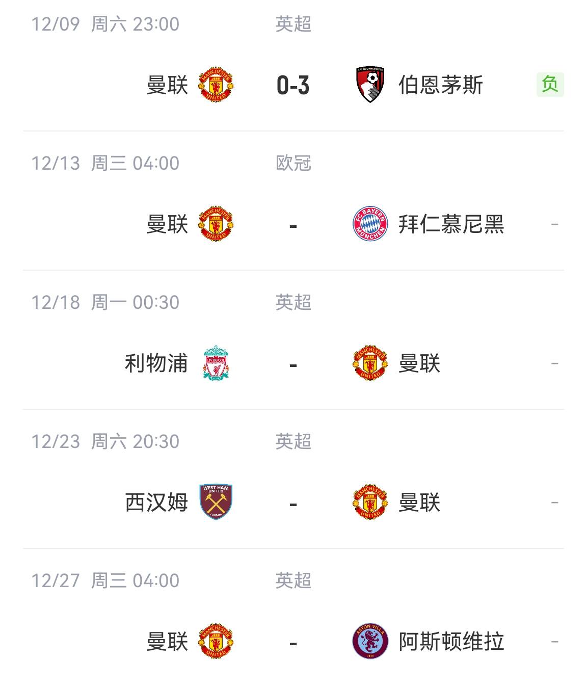 本赛季曼联目前16轮9胜7负,积27分同样排名第六,未来两场球队将迎来欧冠对拜仁的生死战,以及客赴安菲尔德挑战利物浦。