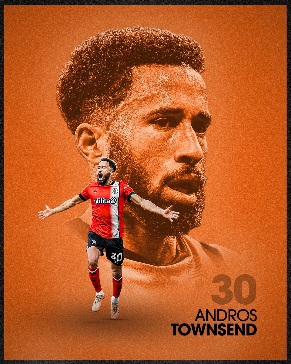 汤森现年32岁,司职右边锋,去年10月自由加盟卢顿,本赛季至今出场11次,打进1球并送出2次助攻。