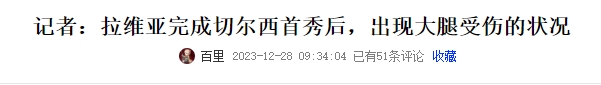 在切尔西英超战胜水晶宫的比赛中,切尔西的另一位夏窗新援拉维亚迎来首秀,但是在替补出场32分钟后,记者曝出拉维亚出现大腿肌肉伤病。伤缺时间未知。