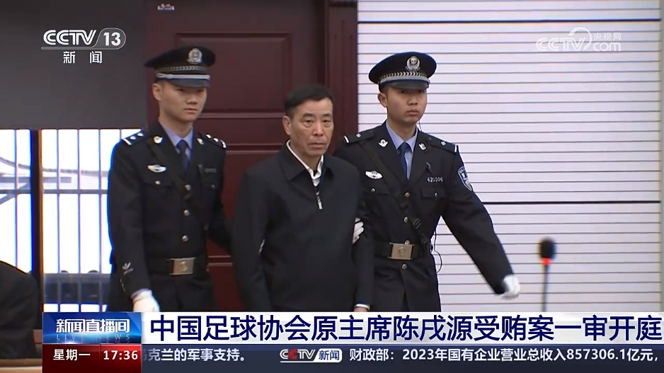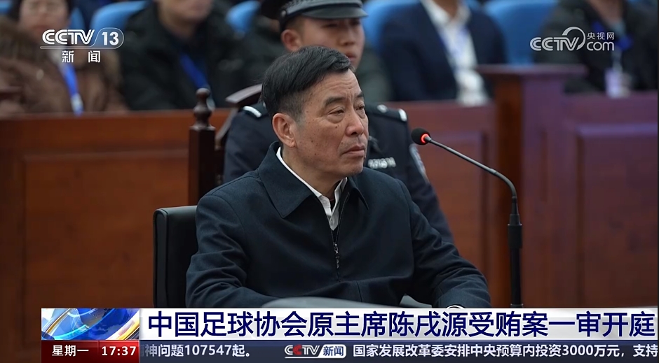 2024年1月29日,湖北省黄石市中级人民法院一审公开开庭审理了中国足球协会原党委副书记、主席陈戌源受贿一案。