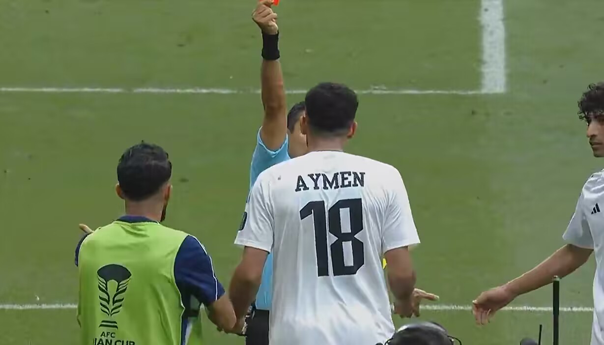 上半场约旦破门后,5人庆祝时围成一圈吃草,裁判可能判定侯赛因的动作是在挑衅。
