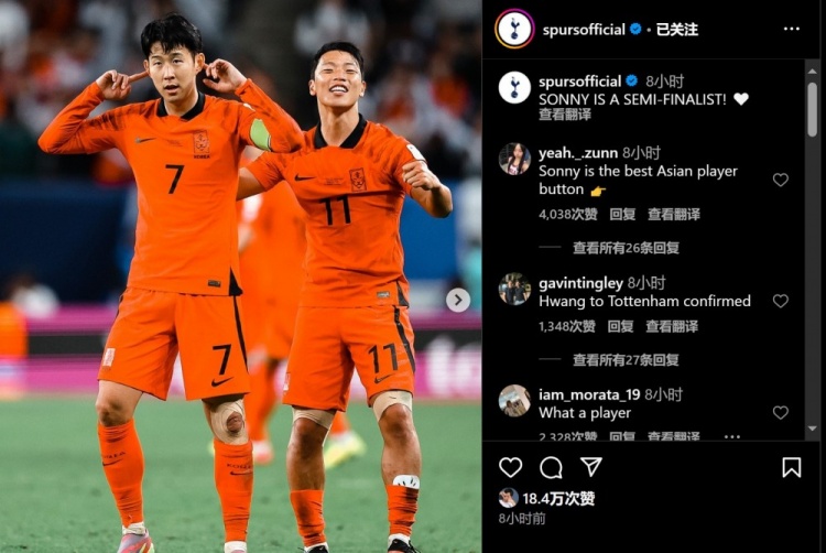 直播吧2月3日讯 亚洲杯1/4决赛,韩国加时赛2-1逆转澳大利亚,将在半决赛中会师约旦。本场比赛,造点并打进致胜任意球的孙兴慜再次拿出大腿级表现。热刺也密切关注着自家球星的表现,连更了5条动态。