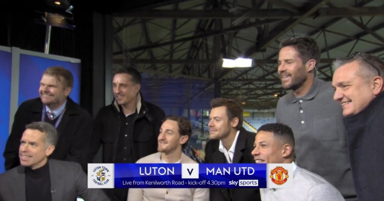 卢顿官方晒出了哈卷来到球场的视频,他也前往了天空体育的演播室,和内维尔、小雷德克纳普等人合影。