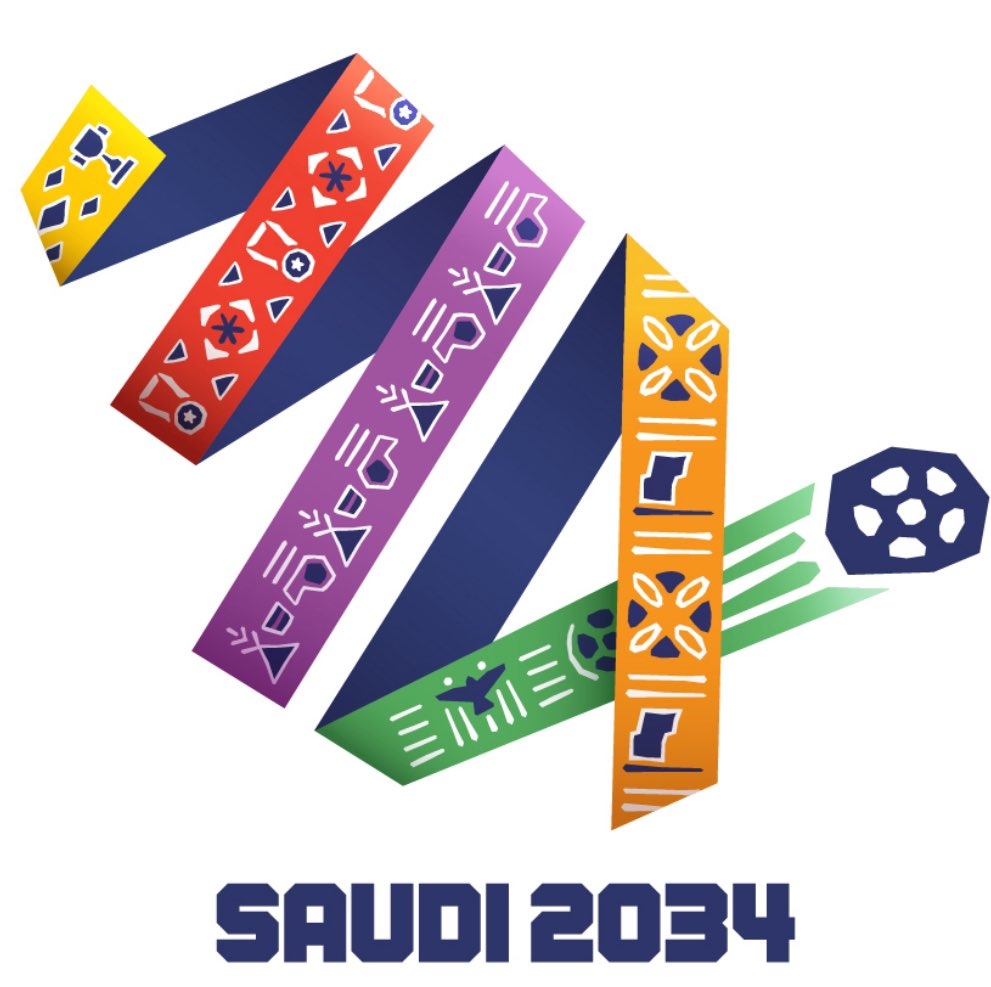 由丝带组成的“34”代表着沙特梦想举办2034年世界杯,5种颜色象征着沙特国家的多样性:沙漠、绿洲、红海、薰衣草以及日出。