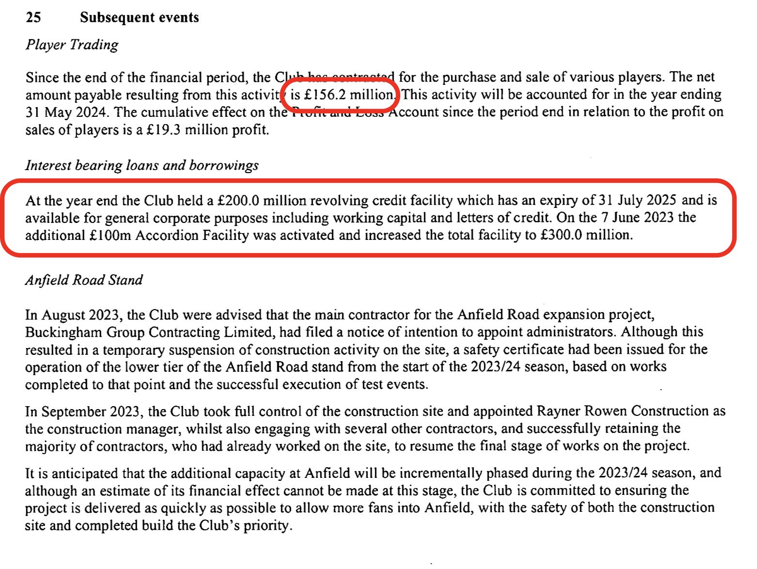 利物浦欠芬威1.37亿英镑,向银行借款1.25亿英镑,透支额度增至3亿英镑,因此在需要时可以借入更多资金。