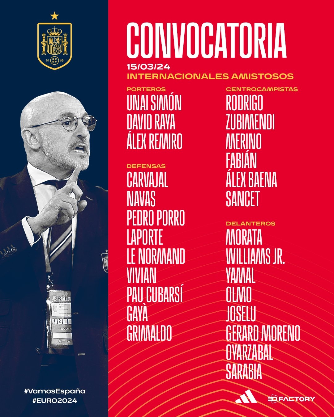 加维、佩德里、巴尔德、大卫-加西亚、阿森西奥、费兰和耶雷米-皮诺因伤落选了本期西班牙国家队名单。
