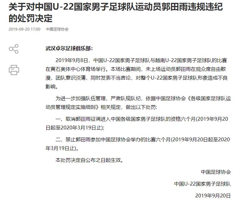 >郭田雨曾被国家队禁赛半年,据悉是因为让陈戌源来“一起打游戏”