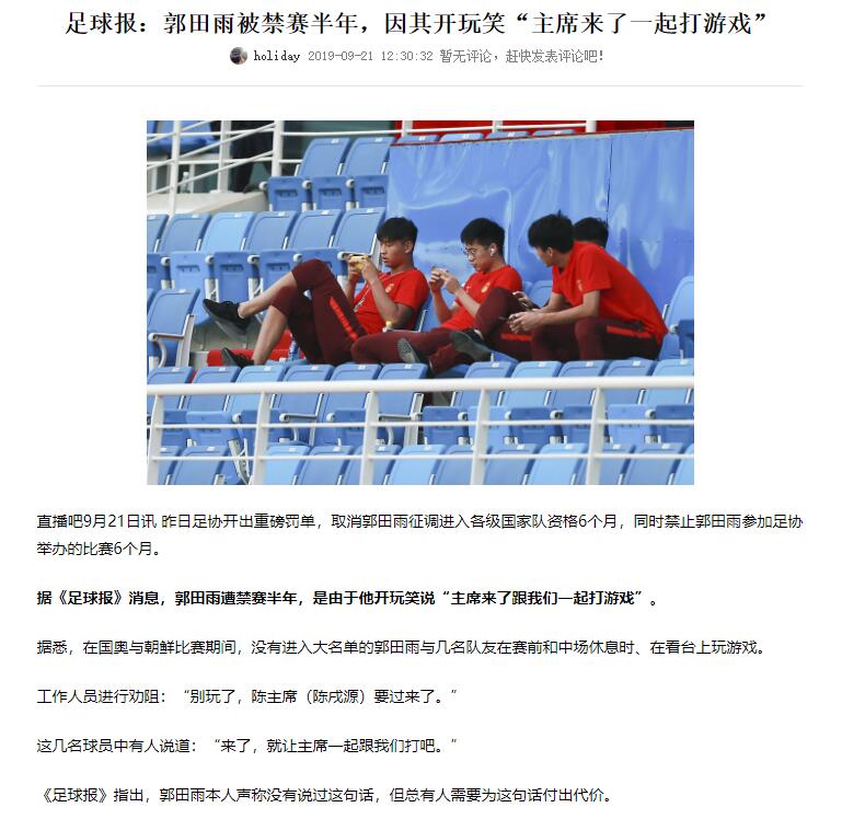 郭田雨曾被国家队禁赛半年,据悉是因为让陈戌源来“一起打游戏”