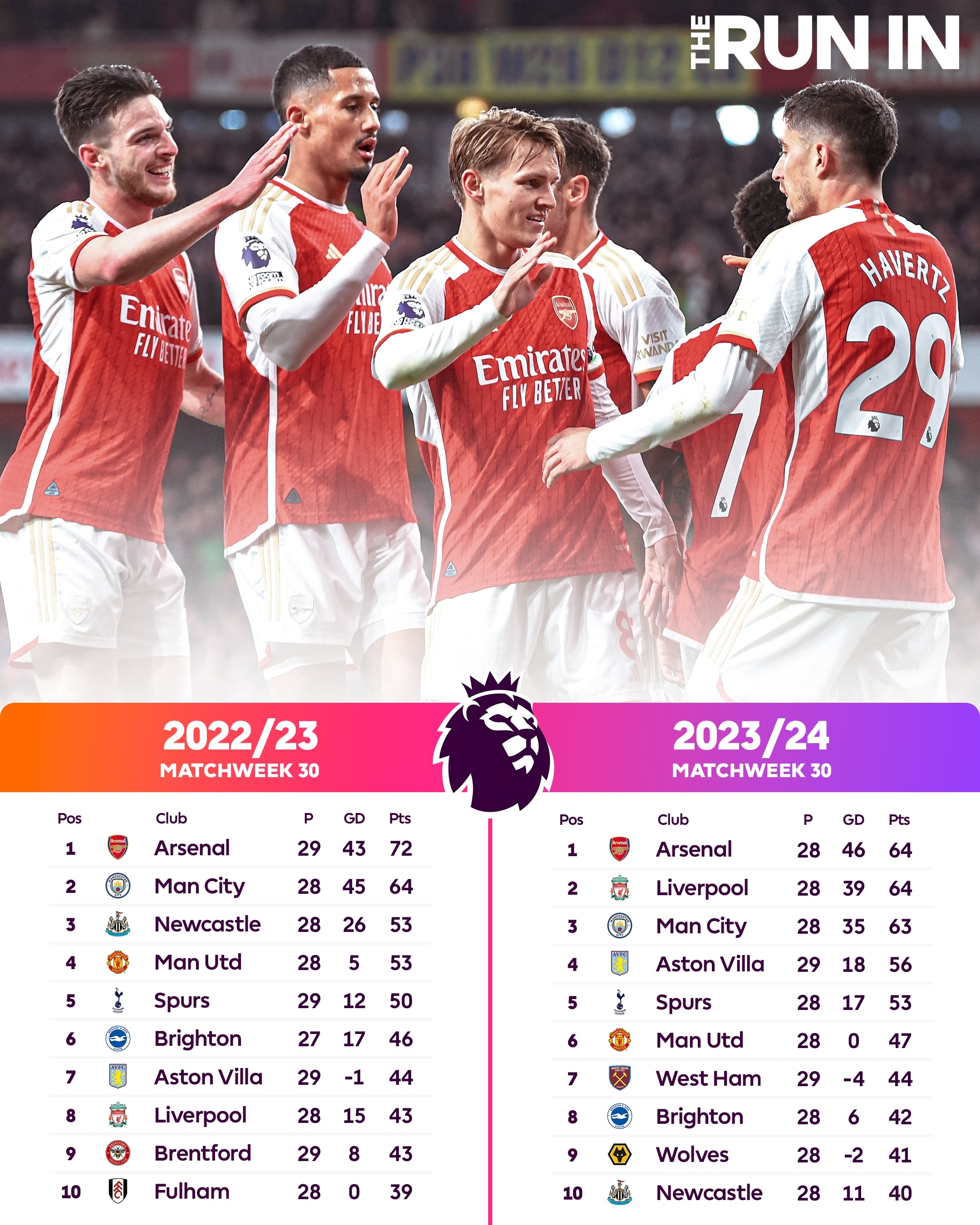 >意不意外?英超官方晒本赛季积分榜对比去年:谁最引人瞩目?