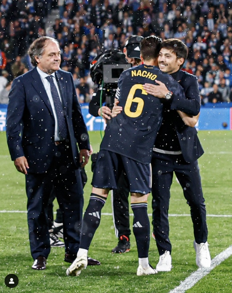 皇马官方晒照:我们参与了致敬大卫-席尔瓦的仪式!