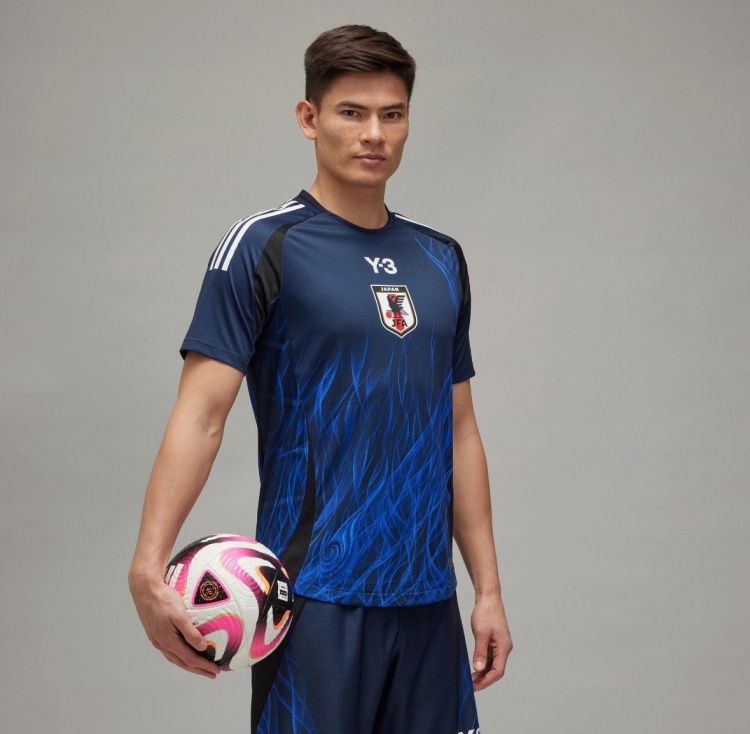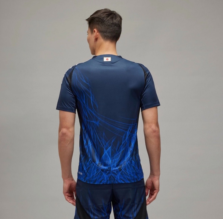 日本队新款主场球衣采用深海蓝,这是2018年以来日本队首次使用深蓝色作为主场球衣主色调。阿迪达斯商标换成Y-3品牌标志,队徽则在胸前中间位置。