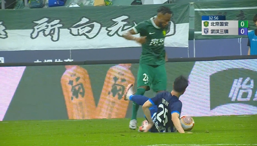 >国安多打一人!邓涵文剪刀脚飞铲阿德本罗,裁判果断出示红牌