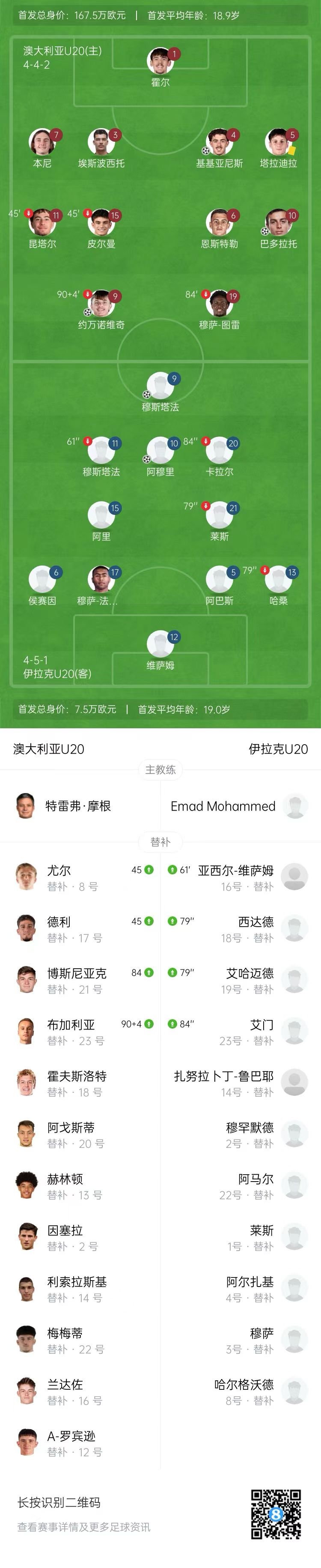 第22分钟,澳大利亚U20前场任意球,约万诺维奇轰出落叶球,皮球弹地后窜入网窝,门将没能扑出皮球,澳大利亚U20扳平比分,1-1!↓