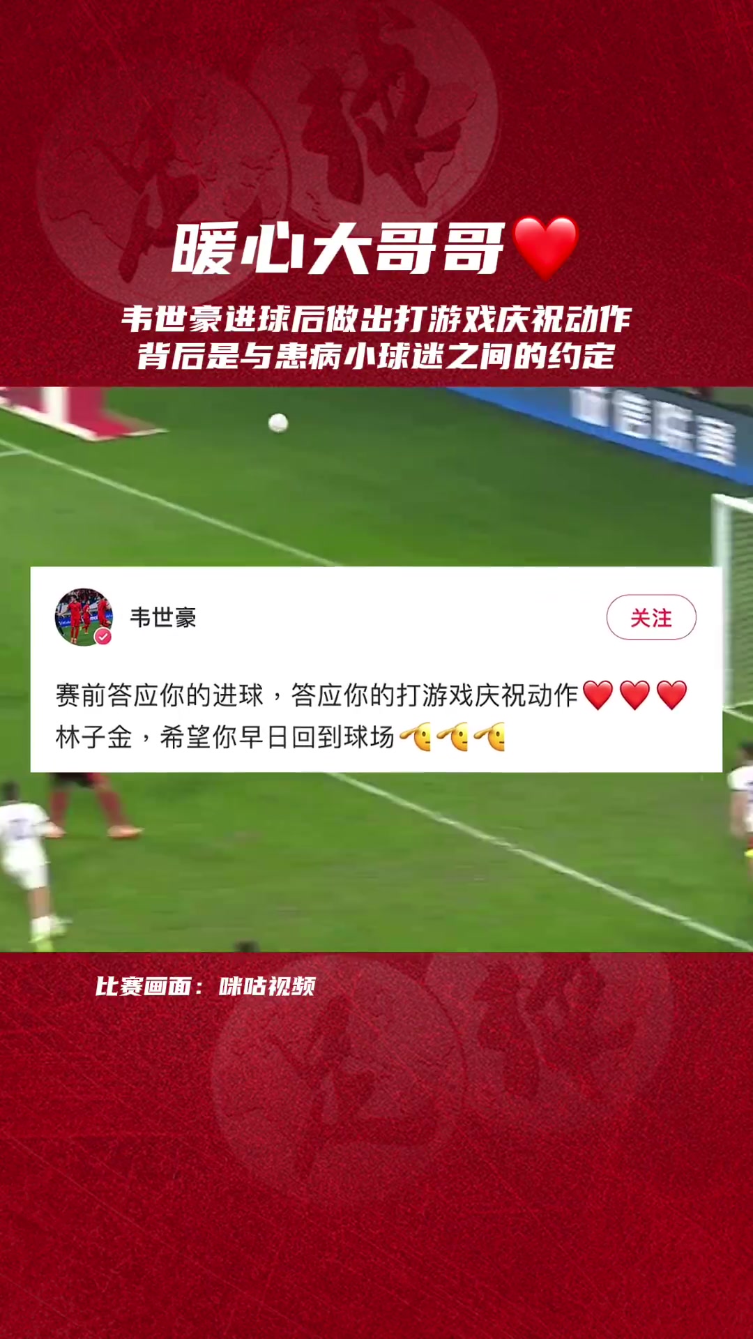直播吧03月03日讯 本轮中超联赛,成都蓉城1-2天津津门虎。比赛第25分钟,韦世豪破门后做出打游戏的庆祝动作,赛后被披露这原来是他与患病小球迷间的约定。