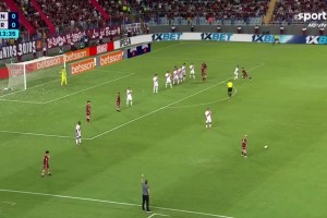 下半场易边再战,第54分钟,萨瓦里诺禁区右路接直塞球转身抽射被门将扑出。↓