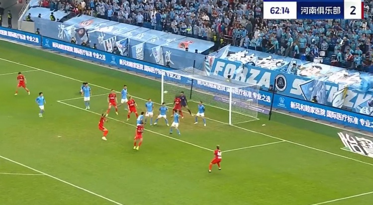 第29分钟,河南角球开出,迈达纳头槌攻门,季家葆将球托出横梁。↓