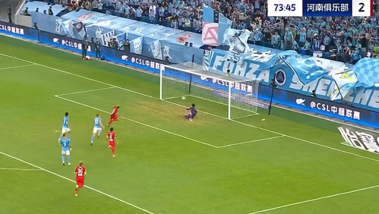 第42分钟,河南起高球,卢卡斯-马亚回头望月将球甩进大门!1-0!河南打破场上僵局↓